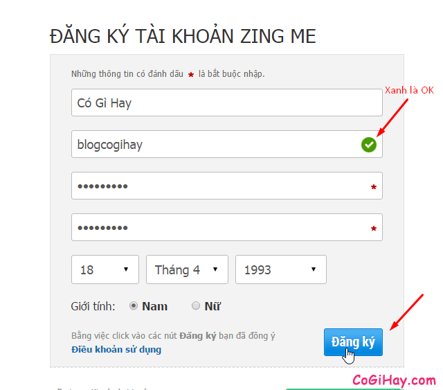 CoGiHay.com – Chúc bạn đăng ký Zing me thành công!