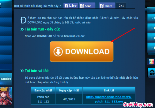 – Giao diện trang tải game zing speed hiện ra như sau: